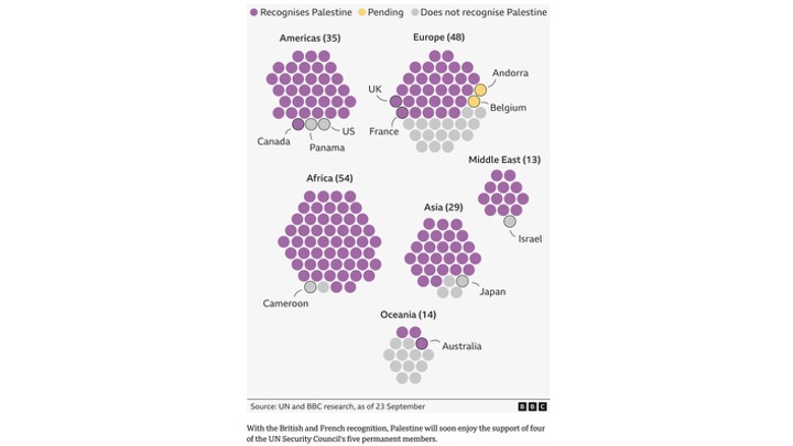 From Paul Adams; “What does recognising a Palestinian state mean?”; BBC 22 September 2025