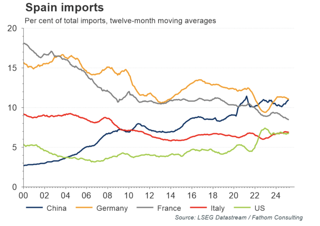 And actual trade with China is quite important. This is seen in the graph below from: Chart JUNE 17, 2025 Chart of the Week: Spain deepens trade ties with China by Fathom Consulting; at LSEG Financial Investment;